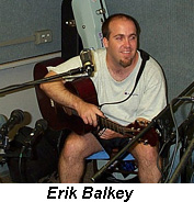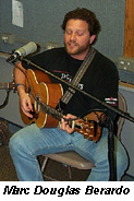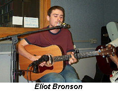 This is part of the continuing “Profiles in Folk” series of in-studio shows that gather four or five singer/songwriters to talk about their music and their careers and, most important, to perform live for our listeners. My thanks to Erik Balkey for gathering this splendid group for the show and to WSHU Asst. Engineer Abe Lettelleir, who mixed sound for the night and took and uploaded digital photos for the Internet, while the show was in progress. This was such a delightful evening of music that we stayed on the air an extra 45 minutes beyond midnight. Our guest list for the night: Erik Balkey (Boston, MA) isa full-time troubadour with recent honors including finalist at the Wildflower Festival in Dallas, TX. His debut CD, "Negotiations & Compromise" (2002) has been heard on over 100 radio programs. Balkey tours full-time and logged 54,000 miles, 300 appearances in over 20 states in 2002. Sing Out! Magazine says, "literate, exacting portraits... a very rewarding album." www.erikbalkey.com Marc Douglas Berardo (Milford, CT) recently won Finalist honors at the Rosegarden Songwriting Contest (MA) and celebrating the release of his CD, "As You Make Your Way." “One of the most haunting voices I have ever heard, rich and melodic guitar work that enhances his vocal artistry, and a wealth of truly great songs." - Don Oja Dunaway- St. Augustine, Florida. www.hayloftrecords.com/mdb/ Eliot Bronson (Amherst, MA) is a recent Grand Prize winner of the Plowshares Songwriting Contest (PA) and is releasing his second CD, "Another Tourist," in the Summer of 2003. "Eliot can pluck guitar and heart strings with frightening ease ... powerful stuff!"- Songwriters Monthly Magazine. www.eliotbronson.com Jenny Bruce (New York City, NY)is a soulfully rooted pop/folk artist.She was a 1999 Lilith Fair Talent Search finalist, and hasgarnered attention fromBillboard Magazine. "(Jenny Bruce's) buoyant persona, joyous delivery, smooth vocals, and tight compositions were a winning combination." - Dave Madeloni, Northeast Performer. www.goodgirl.com Brian Joseph (Los Angeles, CA) was a mainstage act at Kerrville Folk Festival in 2003 and a former Falcon Ridge Folk Festival New Folk Finalist. "...elegant acoustic guitar fingerstylings, warm, velvety vocal phrasing ...knack for gracefully weaving wit, sensitivity, and insight into his lyrics." www.brianjosephmusic.com